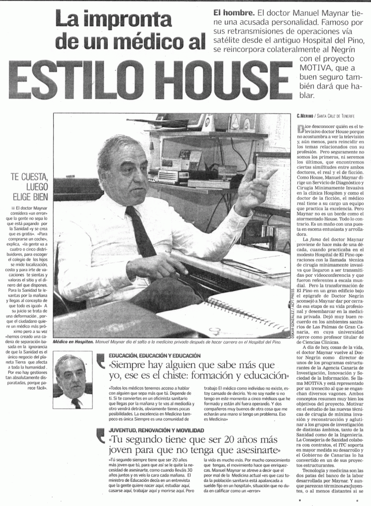 Entrevista concedida por el profesor Manuel Maynar al periódico Canarias 7 en la que se charló sobre sus nuevos proyectos y su carrera profesional, entre otros temas.