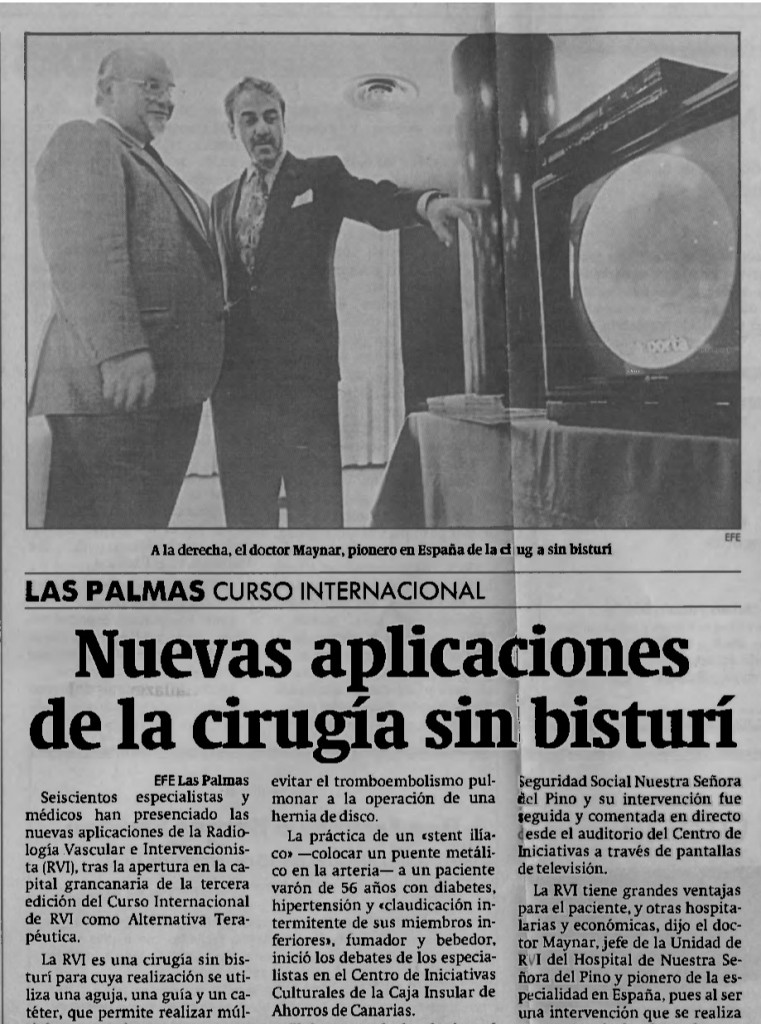 Seiscientos especialistas y médicos han presenciado las nuevas aplicaciones de la Radiología Vascular e Intervencionista (RVI), tras la apertura en la capital grancanaria de la tercera edición del Curso Internacional de RVI como Alternativa Terapéutica a la cirugía con bisturí.