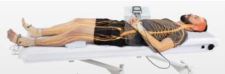 La neuroestimulación se realiza a través de una corriente galvánica bifásica simétrica de baja frecuencia de onda (2-14Mhz), que actúa a nivel celular y que se aplica a través de 2 muñequeras y 2 tobilleras que contienen electrodos de contacto.